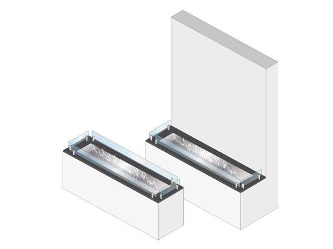 - Выбрать форму и цвет стекла: защитное переднее термостойкое стекло или стекло стемалит на заднюю стенку камина для визуального усиления эффекта горения;